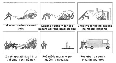 - Gasimo vedno v žarišče požara od roba proti sredini.